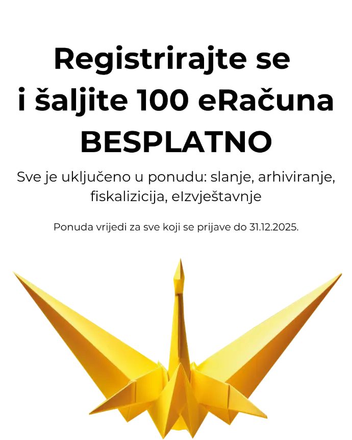 *Nakon što se registrirate automatski možete slati 100 eRačuna u periodu od godinu dana besplatno i bez obaveze.